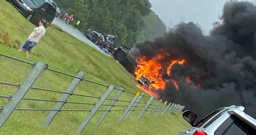 La Junta Nacional de Seguridad en el Transporte ha anunciado el que un equipo de 10 investigadores trabajará en la escena del accidente, cuyas imágenes muestran varios vehículos quemados en la carretera.
