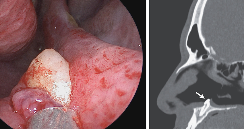 El paciente, de 38 años, había visitado a un otorrinolaringólogo en Nueva York por sus persistentes síntomas, principalmente dificultad para respirar por la fosa nasal derecha. Carecía de antecedentes de traumatismos faciales o anomalías craneales y luego de un examen físico, se le detectó una desviación y una perforación en el tabique nasal (cartílago que separa ambas fosas) y una obstrucción ósea, que parecían ser los culpables.