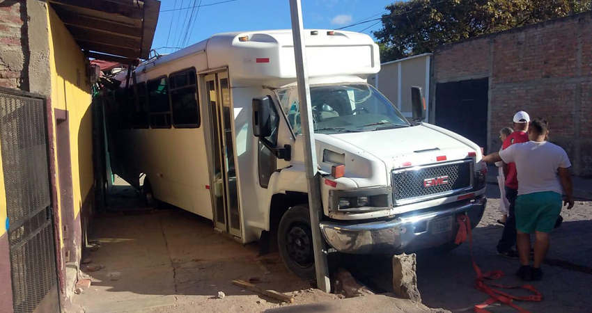 El accidente sucedió durante la mañana de hoy sábado, por las inmediaciones del colegio San Ramón Wanda, en el barrio El Calvario, de la ciudad de Estelí. Producto del percance, milagrosamente solo se reportan daños parciales en el techo y pared de una vivienda y en la unidad de bus color blanco, el cual transportaba personal.